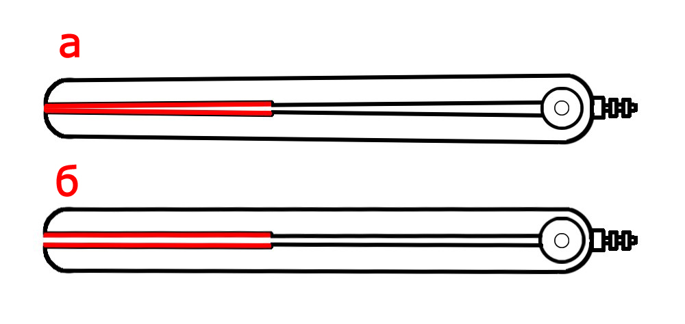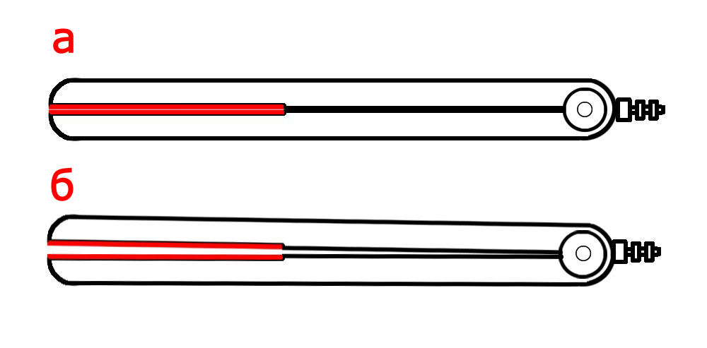 Современная конструкция выпрямителя, которая изображена на рисунке 2а, исключает неравномерный зазор между пластинами путем изначального смещения зазора при сомкнутом состоянии. Дальше, когда выпрямитель открыт, пластины становятся абсолютно параллельны и зазор между ними будет одинаковый 3 – 4 мм (рисунок 2б). Это в свою очередь означает, что при выпрямлении пряди нагрузка на пластины будет равномерно распределятся и прядь волос не будет «закусывать» со стороны основания утюжка. Такое позиционирование пластин будет обеспечивать более быстрое и эффективное выпрямление волос, на которое требуется меньше проходов утюжком, ведь каждый волосок пряди будет хорошо прогрет, поскольку давление по пластинам равномерное.