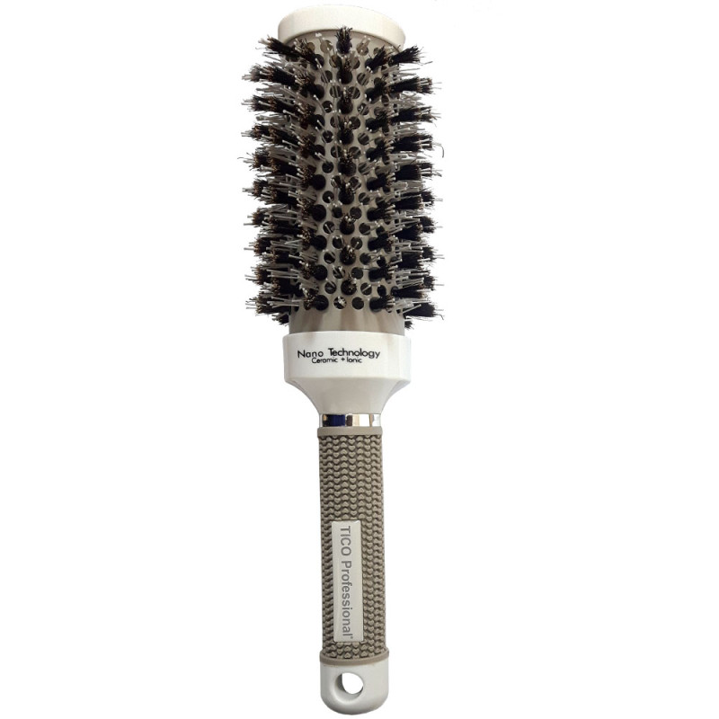 Термобраш TICO Professional серии Nano Technology 600154 обладает рядом преимуществ, которые, несомненно, оценит любой парикмахер и стилист. Мягкая прорезиненная ручка, комбинированная щетина, керамическое покрытие – все это удачно сочетается в данной модели.