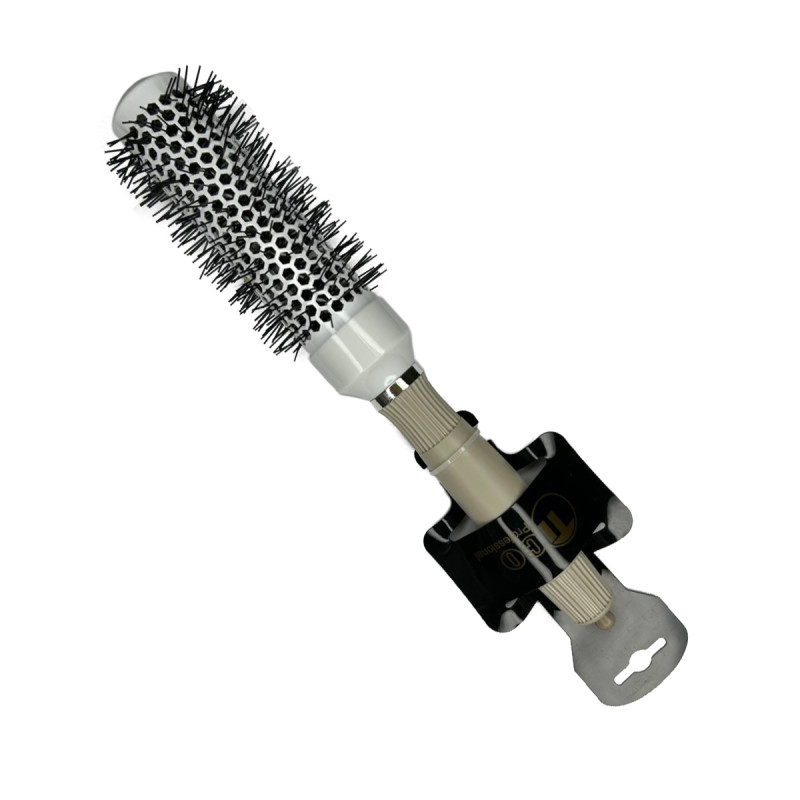 Термобраш Tico Professional Nano Tech Ceramic Ionic Grey&White отлично подойдет для использования с густыми и средними волосами. Благодаря использованию тонких и редких нейлоновых щетинок, браш аккуратно вытягивает и распутывает волосы.