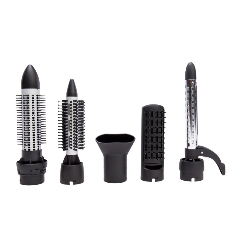 В комплекте есть 3 насадки-щетки разного диаметра (21, 30 и 33 мм), щипцы для завивки волос диаметром 19 мм, разглаживающая щетка и насадка-концентратор для сушки волос. Таким образом, один инструмент Вас заменит как минимум 3 различных инструмента.
