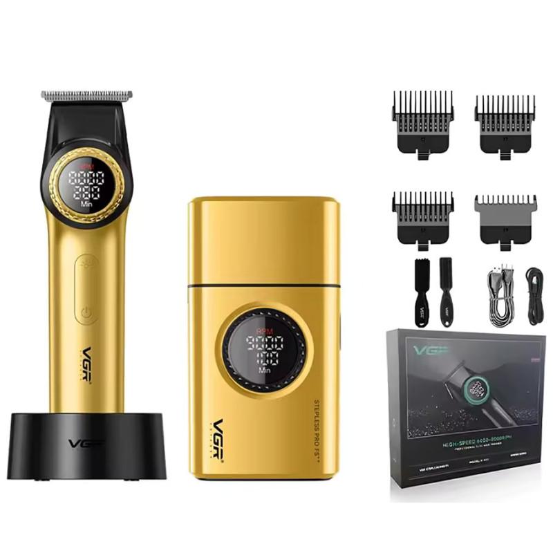 VGR Barber Comb V-977&V-377 Gold - представляет собой отличное решение для приобретения хорошего набора машинок, который состоит из популярных моделей: шейвера V-377 и триммера V-977. Современные и функциональные машинки однозначно сделают вашу работу максимально комфортной и результативной, ведь они оснащены всеми необходимыми современными функциями и технологиями для комфортной качественной стрижки.