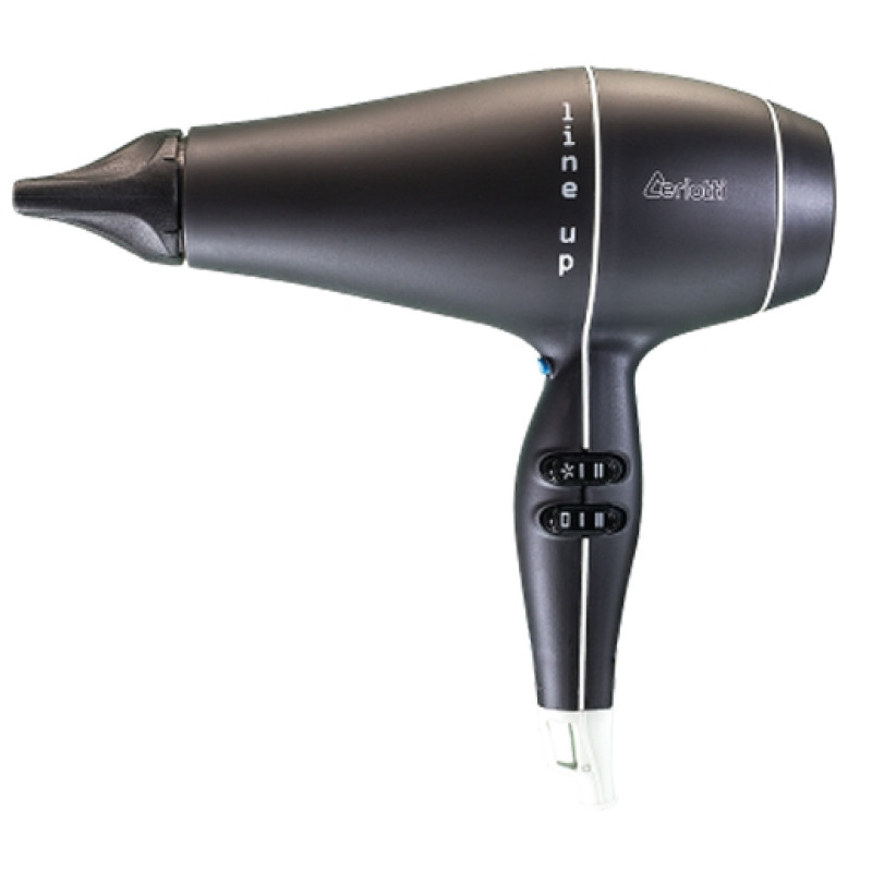 Фен Чериотти Line Up 4500 это мощная профессиональная модель с высокой производительностью. Максимальная мощность модели при достаточном питании сети составляет 2500 Вт, а максимальная температура воздуха на выходе – 160 C. Благодаря фирменному профессиональному мотору переменного тока AC EVO K16, фен обладает мощным воздушным потоком (122 куб. метра в час) и скоростью 54 м/сек. С такой производительностью фен справиться с любыми задачами, не сомневайтесь. Настоящий итальянский мотор этой модели обладает увеличенным сроком службы, а минимально гарантированный срок службы составляет не менее 2 000 часов. Стоит отметить, что фен работает очень тихо, не смотря на свою большую мощность. Уровень шума составляет всего 68 dB.