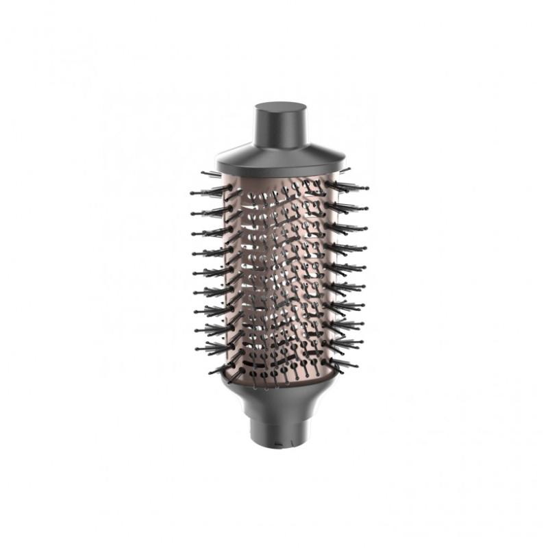 Корпус модели достаточно компактный и легкий, во многом, за счет применения нового типа мотора, изготовлен из пластика и имеет достаточно хорошую эргономику. Модель имеет отдельную кнопку холодного обдува и 3 режима температуры и скорости, которые настраиваться независимо друг от друга. В итоге пользователю доступно 9 различных настроек работы фен-щетка, благодаря чему модель имеет хорошою гибкость в применении с любыми волосами вне зависимости от их длины и состояния.