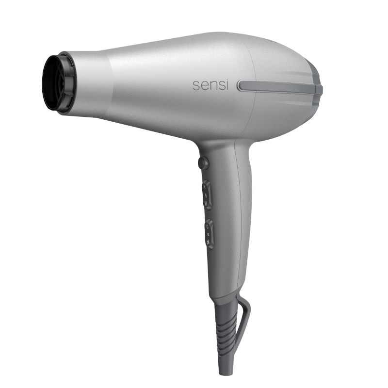 Дизайн модели очень простой и эргономичный, особенностью является симметричное управление, благодаря чему феном удобно пользоваться как правой так и левой рукой. Модель имеет 2 режима скорости и 3 режима температуры с отдельной кнопкой холодного обдува. Хорошая балансировка по весу избавит от болей в запястье во время работы, а длинный сетевой шнур понравиться любому стилисту.