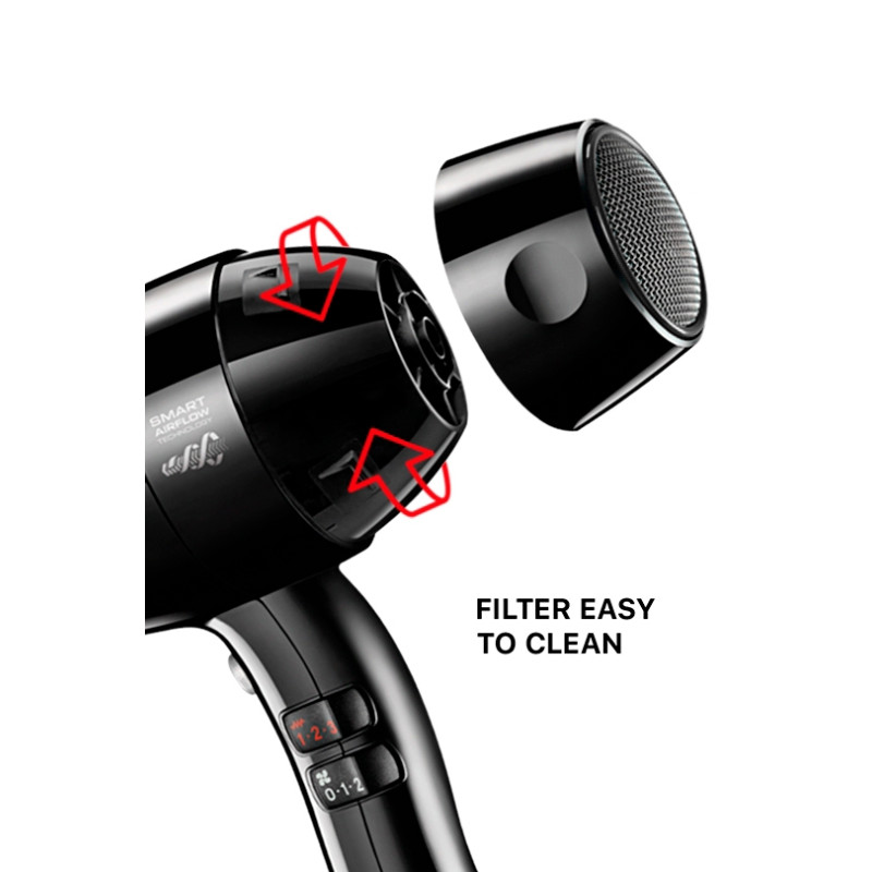 Модель Swiss Silent Jet 8701 (SXJ 8701 RC) оснащается профессиональным мотором переменного тока AC-Perfomance motor с системой предотвращения наматывания волос на якорь – Valera Backstop. Минимально гарантированный срок службы такого мотора составляет 2000 часов или 5-6 лет ежедневной работе в салоне. Мотор обеспечивает воздушный поток мощностью 80 м3/час, что является отличным показателем, а в сочетании с тепловой мощностью 2200 Вт, фен обладает прекрасными возможностями. Магазин vicshop.com.ua может рекомендовать данную модель для работы с длинными и средними по длине волосами. Если же Вы хотите его приобрести для работы, разумеется фен подойдет абсолютно для всего.