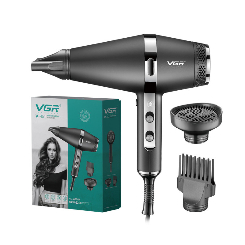 Модель V-451 оснащена профессиональным мотором переменного тока, который отличается большим ресурсом и хорошими показателями по мощности потока воздуха. В сочетании с тепловой мощностью 2200 Вт, данная модель сможет обеспечить достойную сушку практически любых волос. 2 режима скорости и 3 режима нагрева позволят более точно подобрать требуемый режим для вашей задачи.