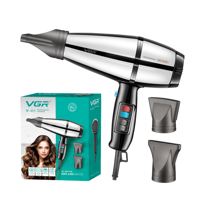 Фен VGR V-466 оснащен профессиональным AC мотором, который обеспечивает мощный поток воздуха и высокую производительность. Сбалансированный поток воздуха и тепловая мощность 2400 Вт позволяют использовать фен на средних и длинных волосах, делая сушку быстрой и эффективной.
