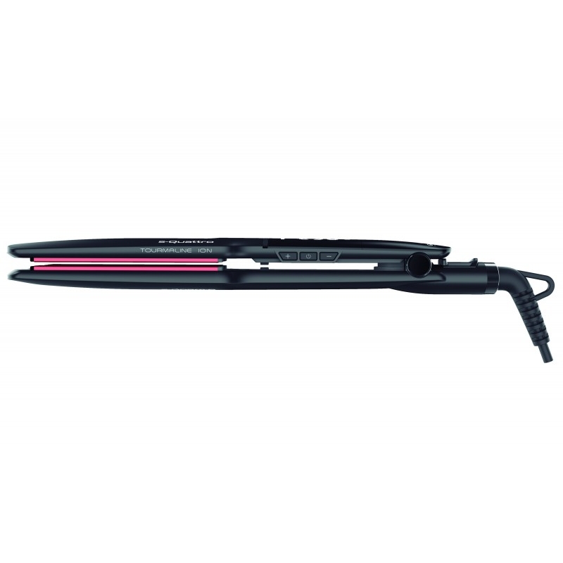 Утюжок GAMA S-Quatro Tourmaline выполнен в пластиковом корпусе в стильном дизайне, длиной 31 cм и весом всего 248 грамм. Пластик качественный, в руке не скользит и не хрустит. Автоматическое переключение питания в модели позволит использовать выпрямитель от любой сети 110 – 240 В. Модель оснащена гибким шнуром питания с петелькой и системой вращения на 360°.