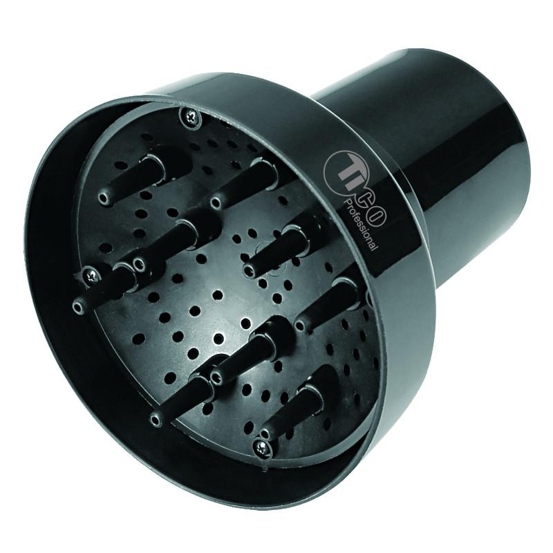 Всередині кріплення має спеціальну пружину, яка обтягує пелюстки та гумові вставки, щоб насадка не спадала з фену.