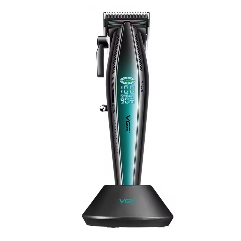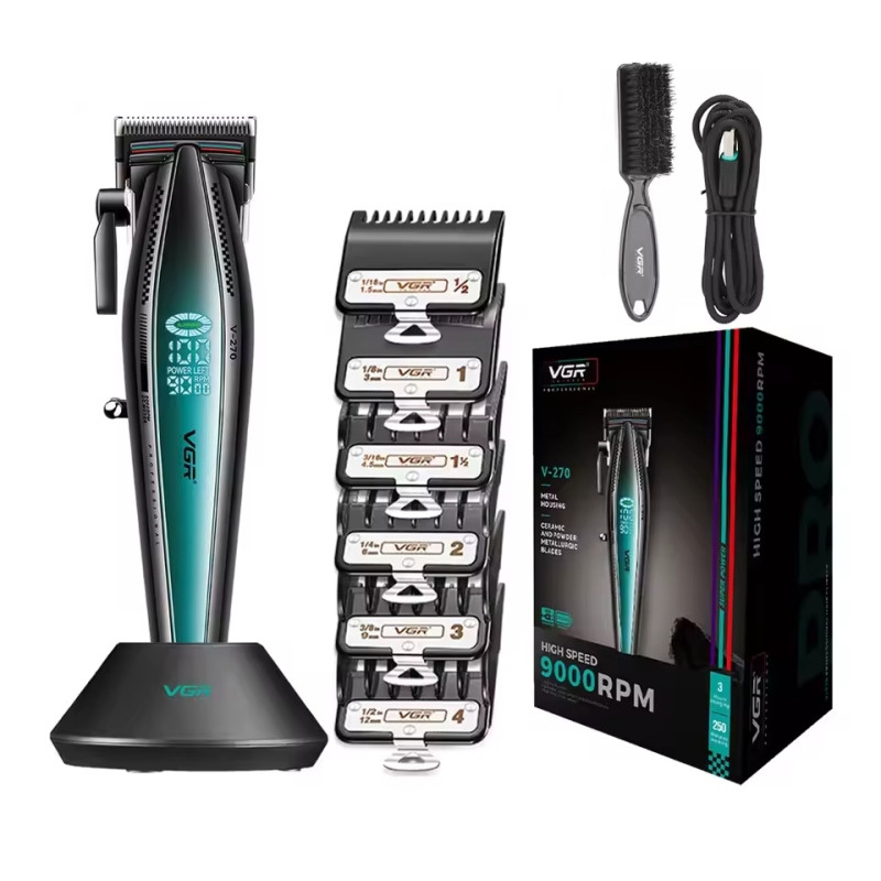 Модель VGR V-270 оснащена потужним роторним двигуном з високою частотою роботи. Машинка оснащена системою контролю частоти роботи двигуна, щоб забезпечити постійну потужність на швидкості 9000 оборотів. Висока швидкість двигуна забезпечує чистий зріз при будь-якій інтенсивності роботи. На корпусі розміщено спеціальний LED індикатор, на якому відображається розрахунковий час роботи від акумулятора та швидкість роботи двигуна.