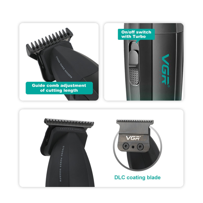 Тример для стрижки VGR V-906 є стильною професійною моделлю, яка оснащена всіма сучасними функціями та технологіями для комфортної та легкої стрижки волосся. Тример дуже простий у використанні, тому чудово підійде як для професійного, так і для домашнього використання, а оригінальний та стильний дизайн, безсумнівно, сподобається будь-якому професіоналу.