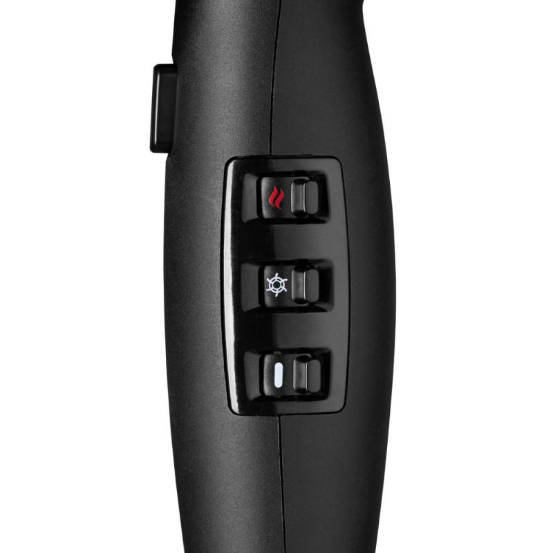 Модель BaByliss BAB7600E оснащена стандартним кнопковим керуванням без зайвої електроніки – все максимально просто та надійно. Користувачеві доступно 2 режими швидкості (78 000 та 95 600 rpm) та 2 режими нагрівання (78 °C та 115 °C). Функція холодного повітря працює за натисканням окремої кнопки, розташованої по центру ручки. Кнопка з фіксацією – її не потрібно постійно утримувати для холодного повітря: одне натискання та фен подає холодне повітря, повторне натискання – фен дме теплим або гарячим залежно від вихідного режиму. Великої гнучкістю фен не має, але даних режимів цілком достатньо для сушіння практично будь-якого волосся.